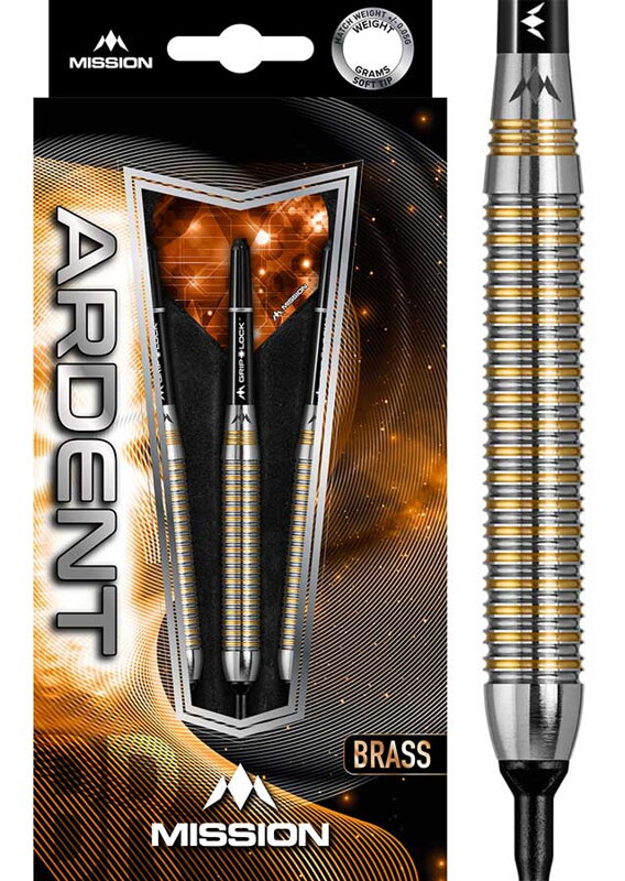 Mission Ardent darts represent a whole new level in the design and manufacture of brass darts. The Darts have a rounded tip, a straight middle part and the end turns into a long narrowed part. The nickel-plated barrel is provided with an alternating razor grip and a radial annular grip. This fantastic design complements the laser-etched Mission logo.